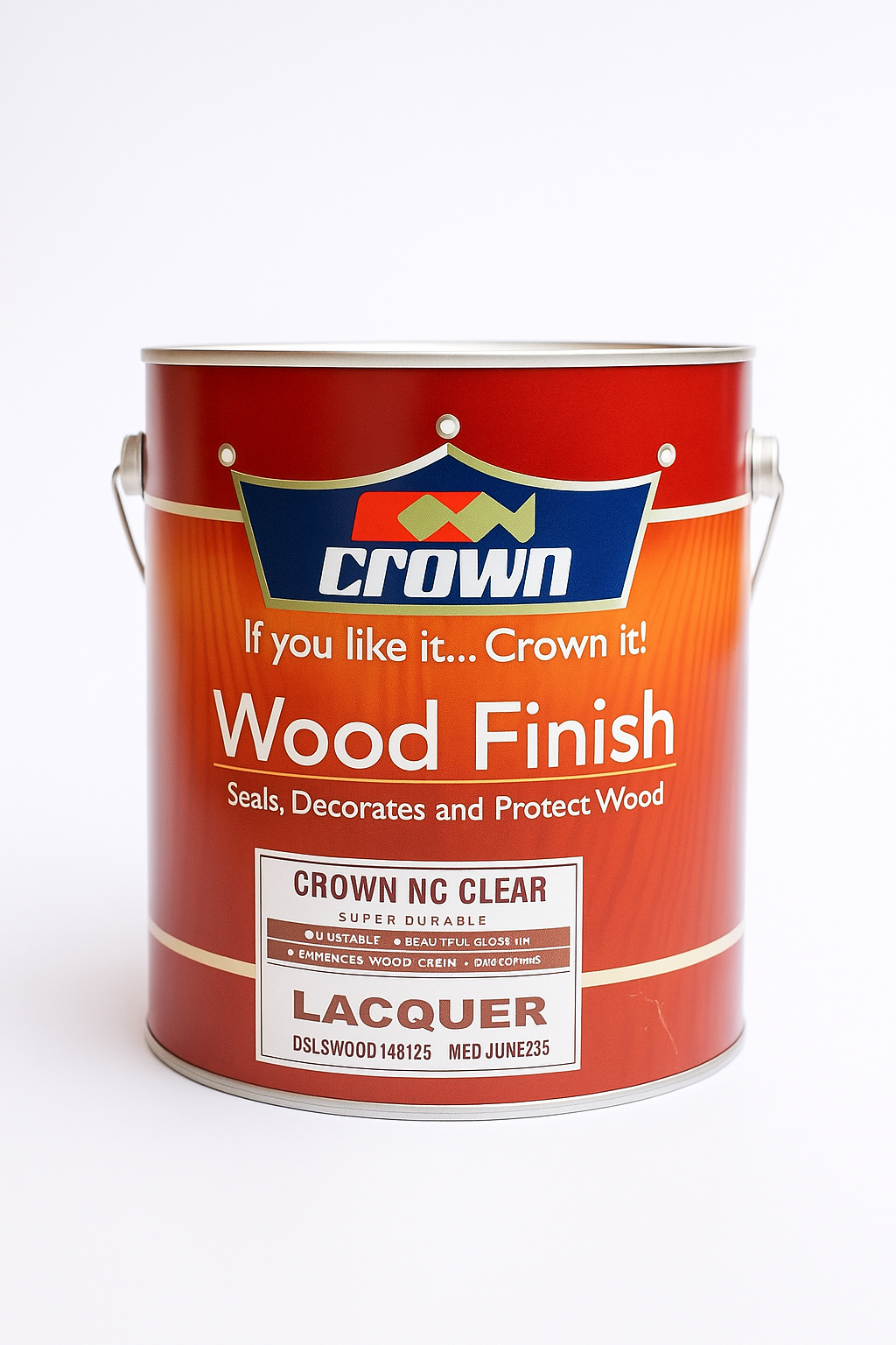 Give your wood surfaces a professional, long-lasting finish with Crown NC Clear Wood Finish available at Rangi Paint Store, Kenya. Formulated with nitrocellulose resins, this clear coat provides a smooth, elegant finish that enhances the natural beauty of wood while ensuring protection against daily wear and tear.