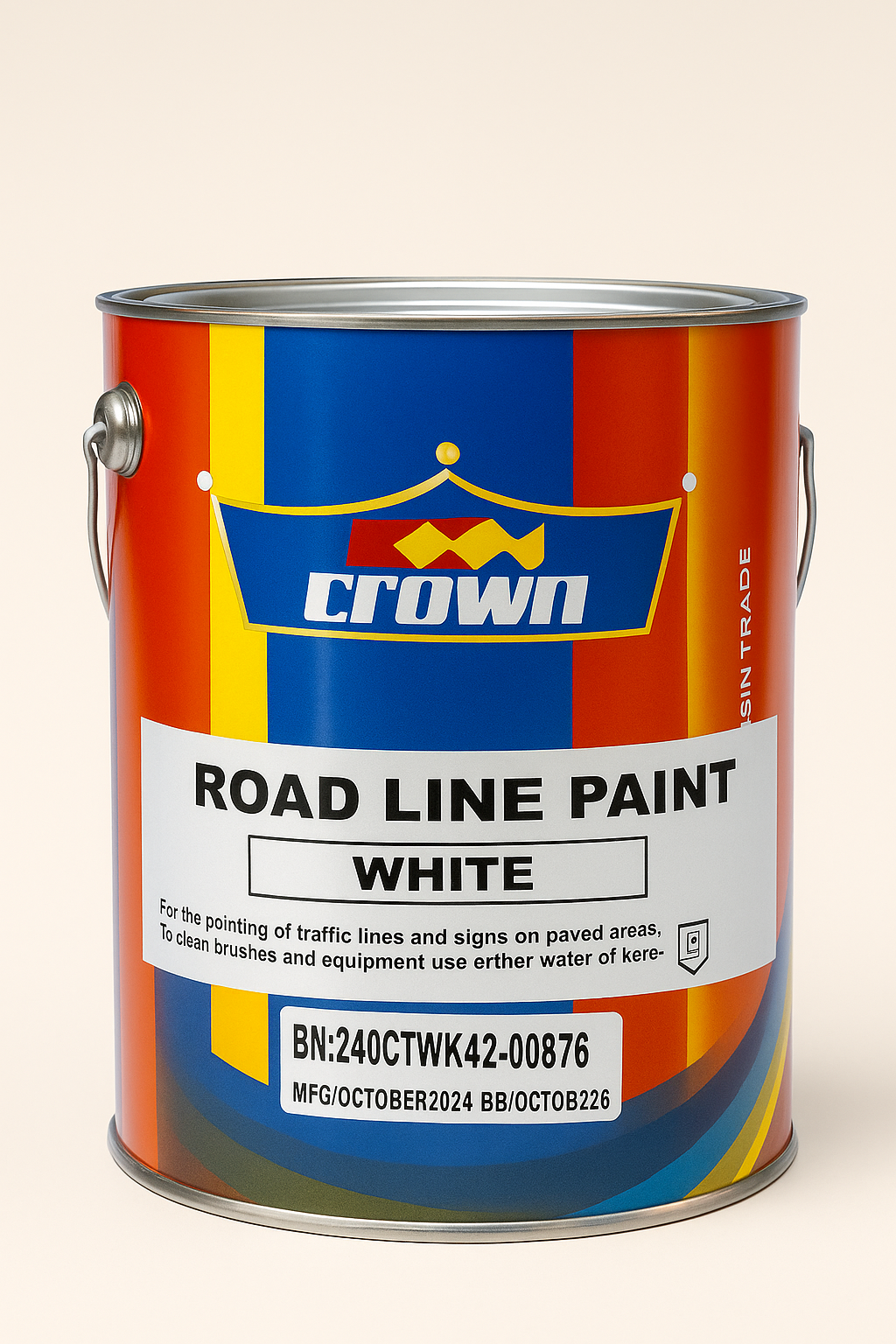Crown Road Marking Paint is a high-quality, durable solution designed for long-lasting road markings. Ideal for highways, parking lots, and pedestrian lanes, it offers excellent visibility and resistance to wear and tear. Easy to apply and fast-drying, this paint ensures clear and safe road markings that stand up to traffic and weather conditions. Perfect for all your road marking needs.